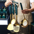 7 PCS Stainless Steel Silicone Kitchen Utensil Slotted Spatula Turner Ladle Serving Spoon Pasta Server Cooking Set